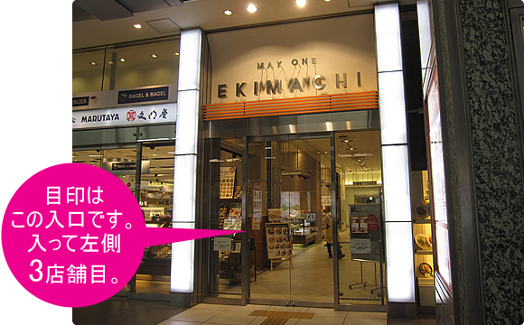 JR浜松駅構内にある浜松駅ビルメイワン1F(在来線切符売り場向かい側)「EKIMACHI WEST」内にある「まるたや洋菓子店 メイワンエキマチ店」です。 出張時や帰省時のお土産用としてもご利用いただきやすく、8:00〜21:00(年中無休)営業の為、仕事帰りにもお寄りいただけます。